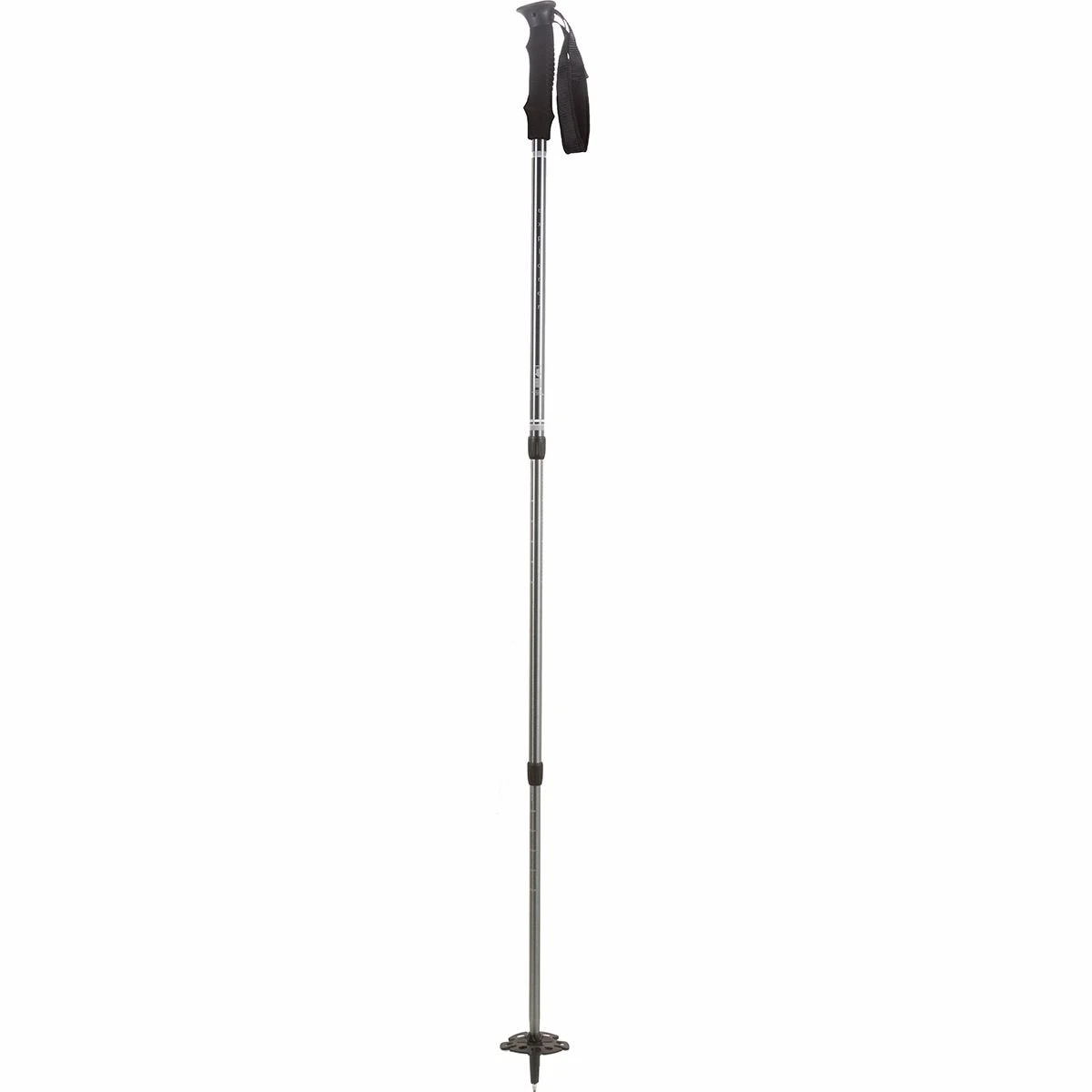 Stabilize and support yourself on rocky stretches of trail and steep inclines with the ALPS Mountaineering Explorer Trekking Pole. This classic trekking pole is crafted from 7075 aluminum for lightweight carrying and high-strength properties. The Tungsten Carbide tip aggressively digs into trail surfaces, while the large basket promotes balance across uneven ground. Its anti-shock system dissipates vibration on trails strewn with roots and loose rocks. It fits a large variety of users by extending from 26.75 to 53-inches. Includes one pole.